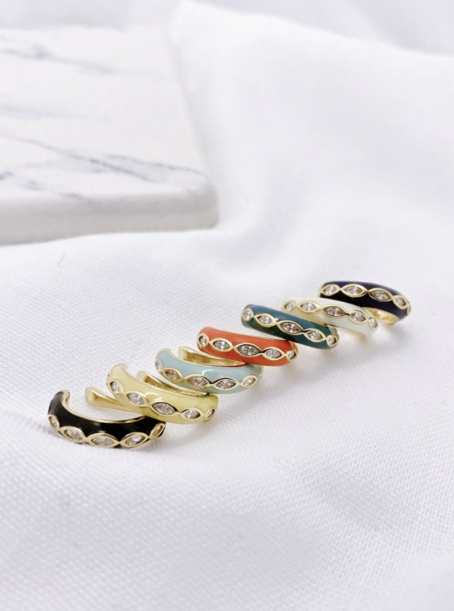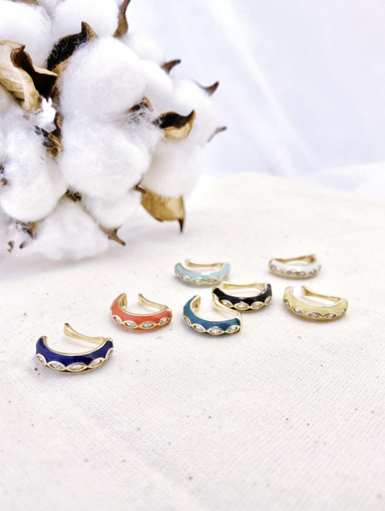 Color Enamel Ear Cuff - Non-Piercing Diamond Detail Earring