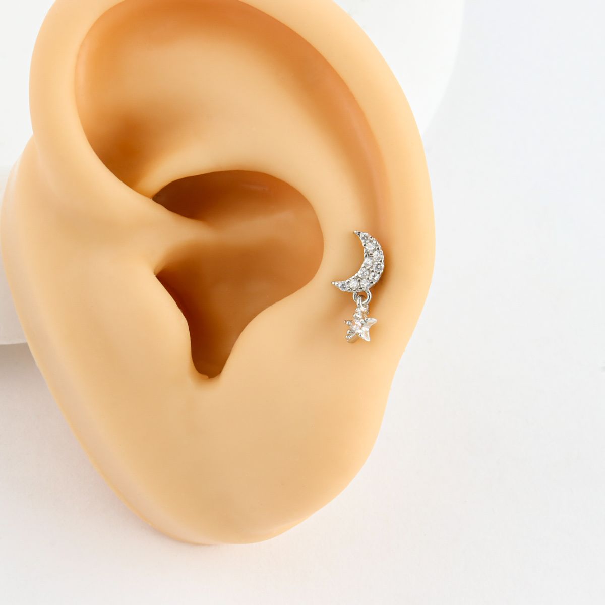 Moon & Star Dangle Barbell Piercing – Surgical Steel Bar in Gold, Silver & Rose Gold