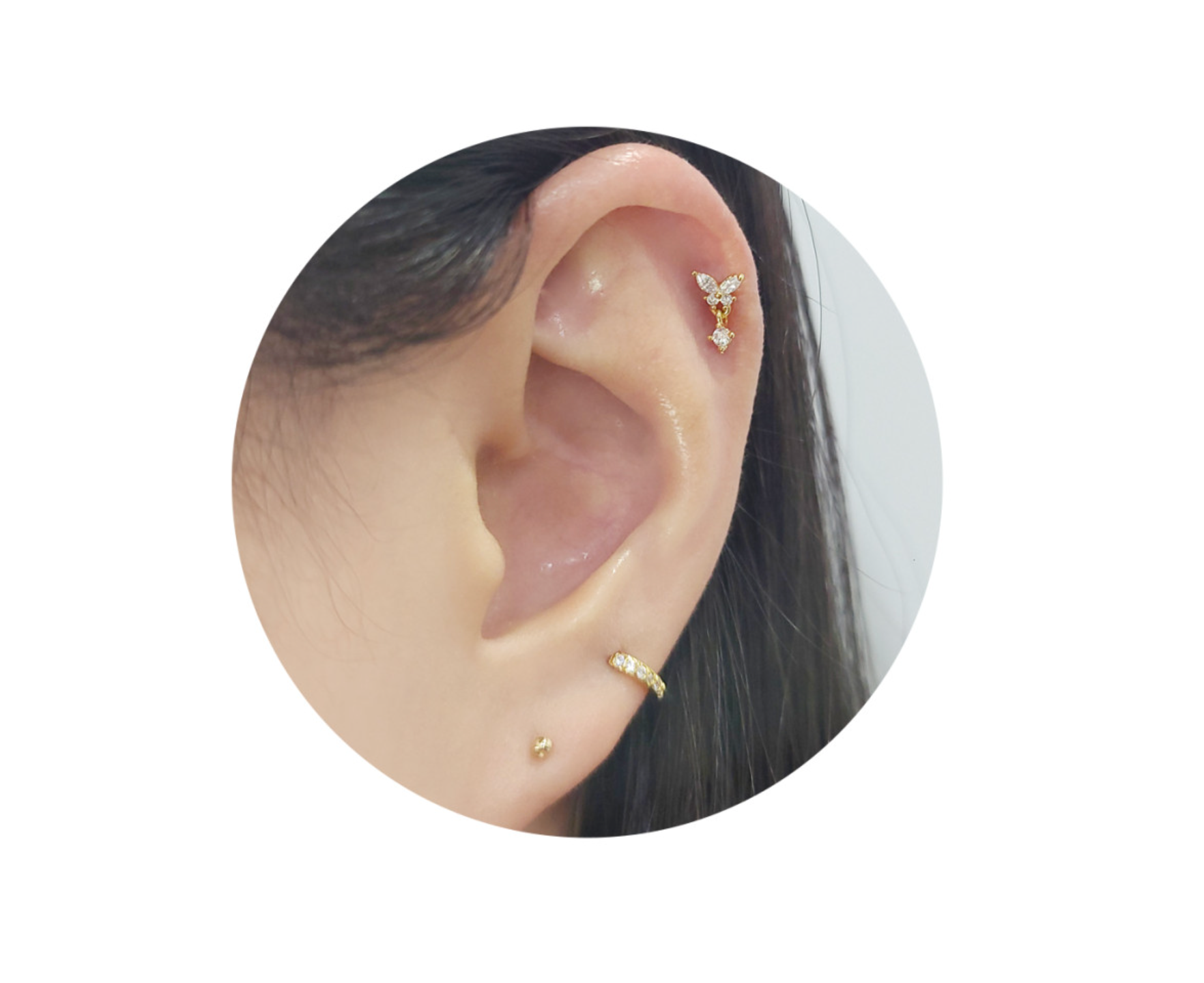 Bring a gentle sparkle to your ear with this adorable butterfly drop piercing. ✨
