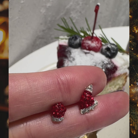 🎅 Santa Hat or Mitten CZ Barbell Ball Earrings