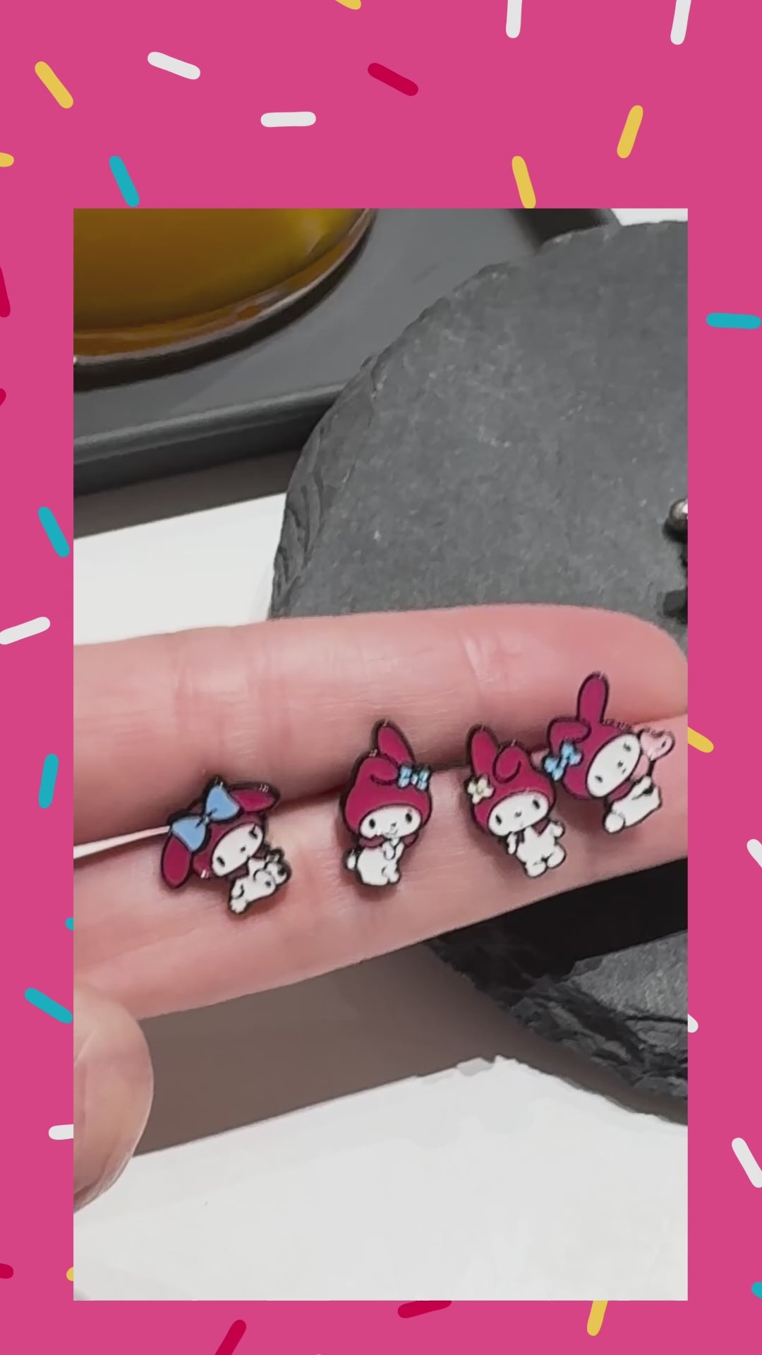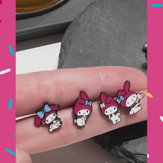 Fall in love with these playful and expressive earrings inspired by the beloved My Melody character. Each piece is handcrafted in Korea with attention to detail, using surgical steel posts that are perfect for sensitive ears.