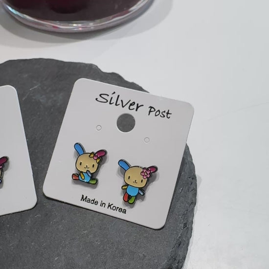 These adorable earrings are inspired by Usahana — a charming bunny character with colorful ears and sleepy eyes.
