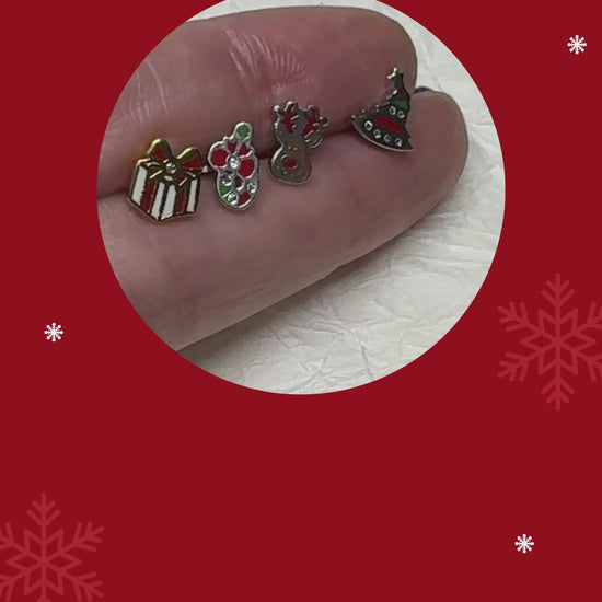Christmas Mini Barbell Stud Earrings – Tree, Candy Cane, Gift, Rudolph – Handmade in Korea
