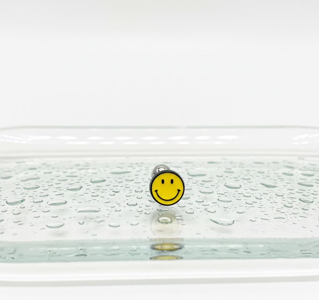 Smiley Flower Barbell Earring – White / Multicolor / Yellow | Handmade Korea