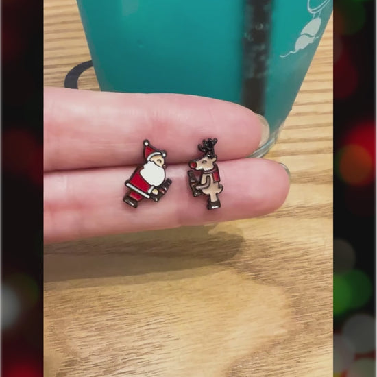 Santa & Rudolph Silver Post Earrings β Handmade in Korea