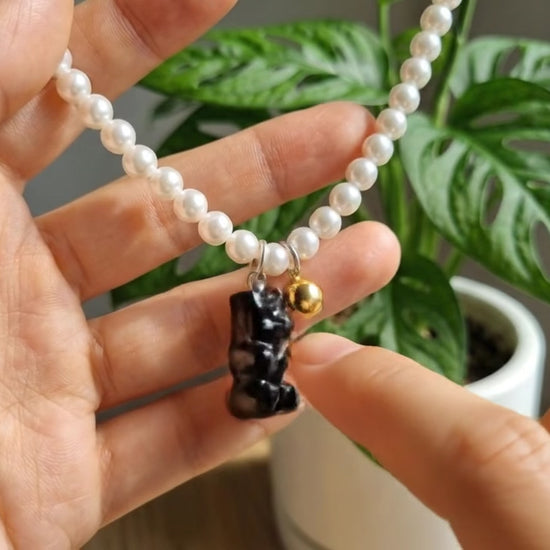 Swarovski Pearl Gummy Bear Necklace - Y2K Coquette Beaded Choker