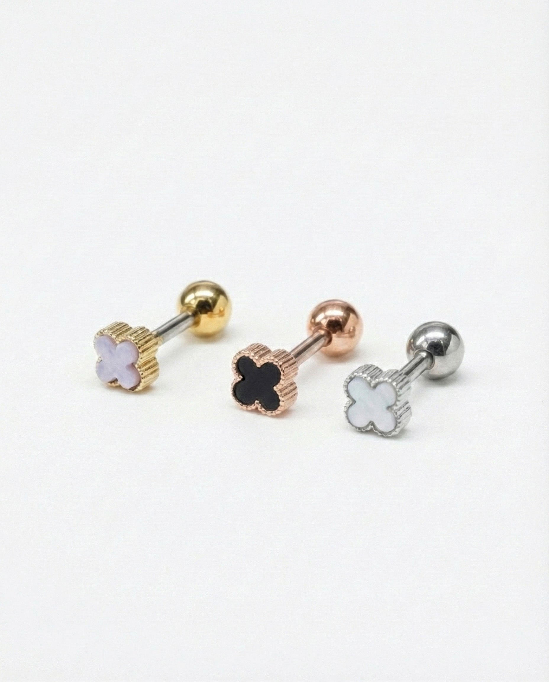 Titanium Post Four Leaf Clover Piercing Earring - Natural Mother of Pearl in White Black Lavender, Luxury Style Lucky Charm Cartilage Helix Conch Jewelry