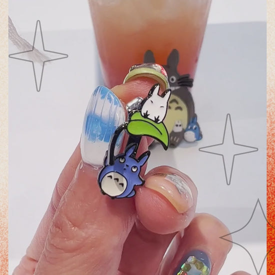These Totoro-inspired earrings are designed for fans who want to carry a little magic with them every day ✨ Featuring a playful asymmetrical design, each earring showcases iconic forest creatures beneath a green leaf 🍃