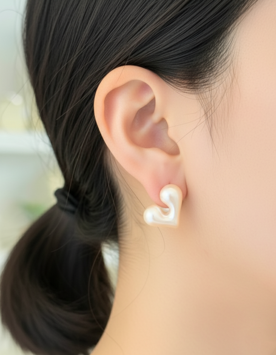 A soft, sculptural heart paired with a high-luster 12mm pearl back.