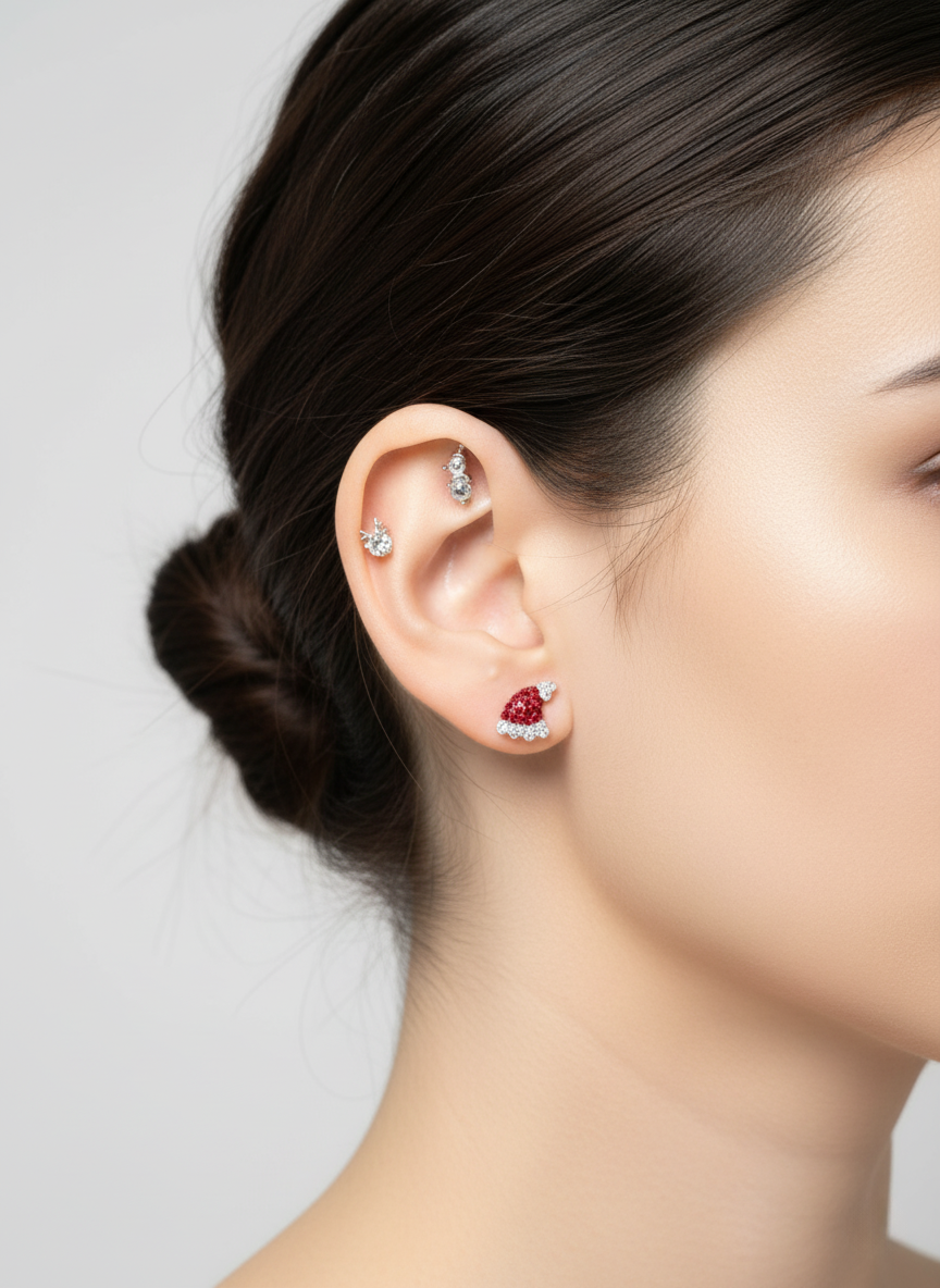 Handmade winter-themed studs crafted with high-clarity cubic zirconia. Each piece reflects a soft crystal sparkle — perfect for holiday ear styling.