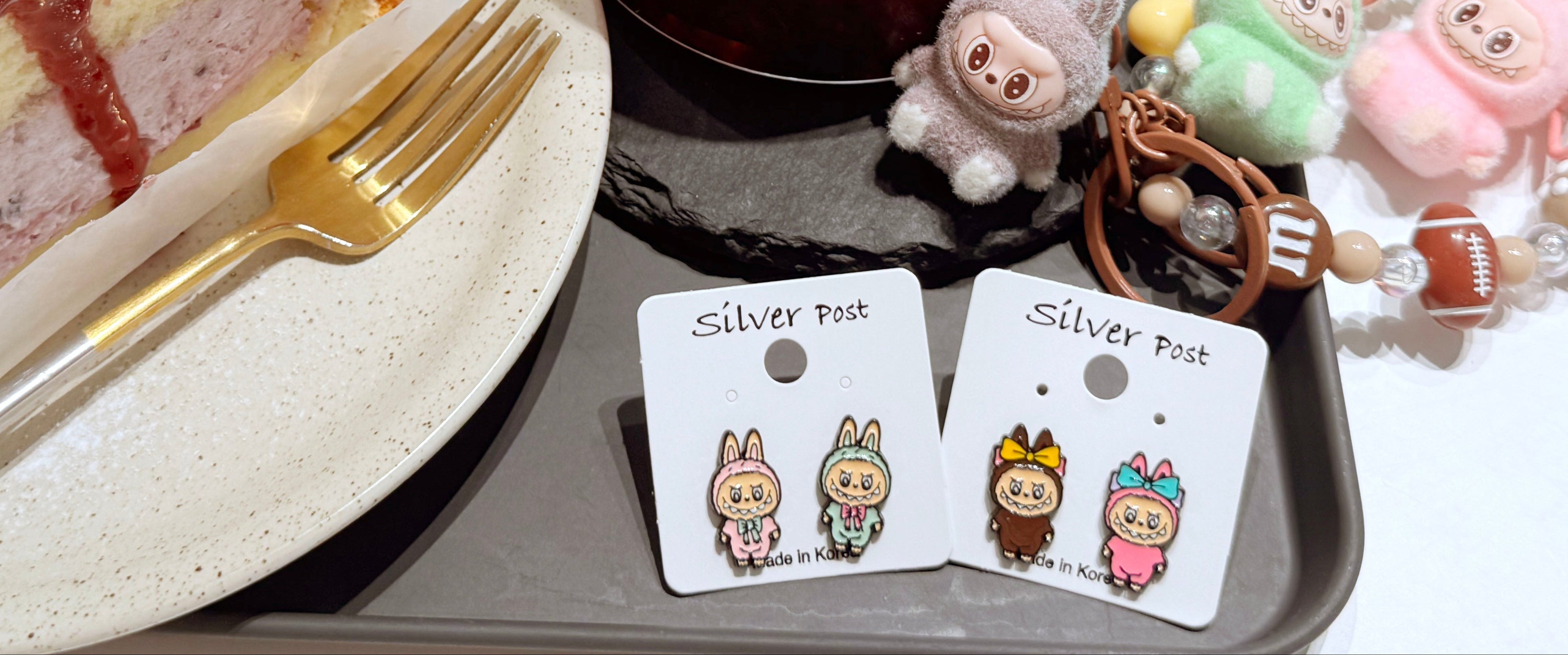 Handmade Moncici-Inspired Earrings,Kitsch Retro Character Silver Post , Cute Vintage Toy Jewelry, Korean Handmade,k-pop accessories,